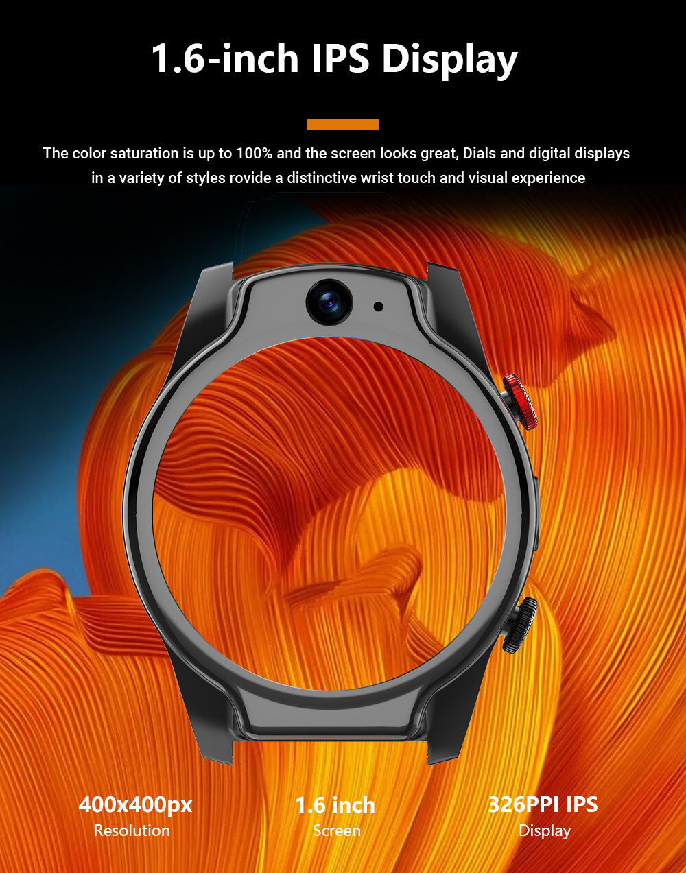 * Displayer: 1.6 inch IPS full mount screen 400*400 resolution A large enough and clear round screen for a better view of the world