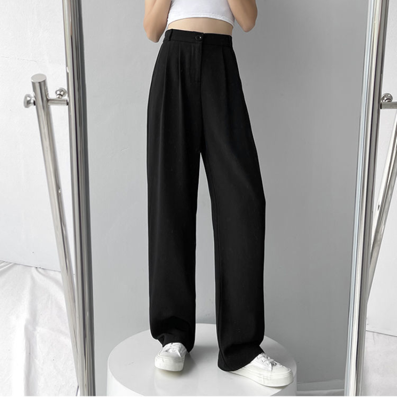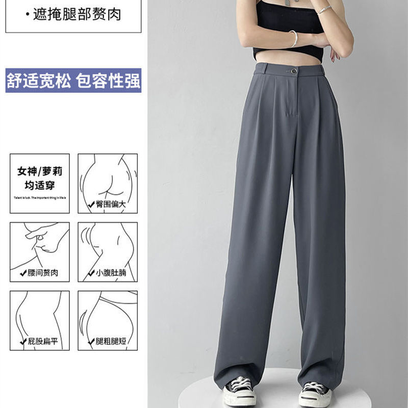 HolidayQueen Suit Pants Women's Summer Straight Wide-leg Pants Ice Silk Thin Loose High Waist Slim Trousers Free Shipping HQP0054