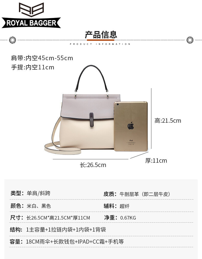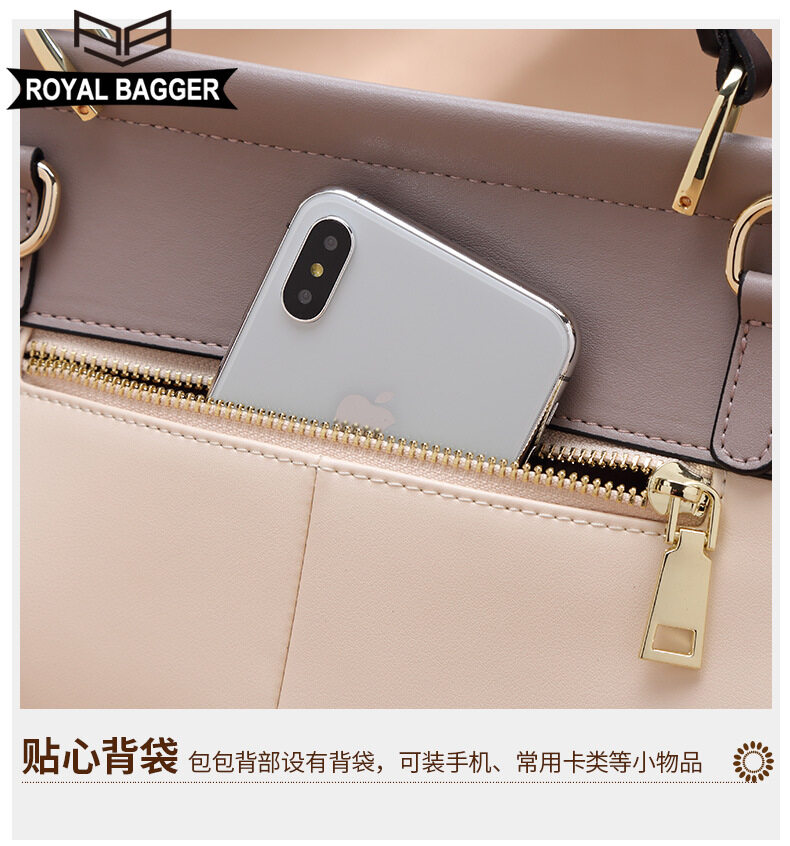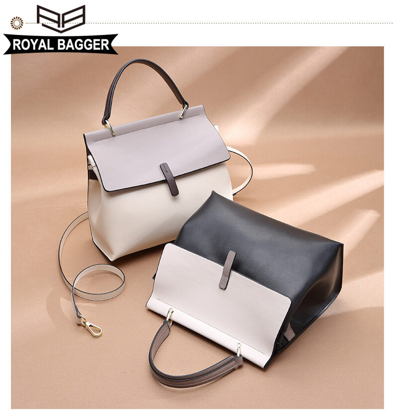 Royal Bagger New Fashion Handbag for Women Genuine Leather Casual Simple Girl Shoullder Bags Large Capacity Elegant Ladies Crossbody Bags